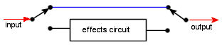 With True Bypass the guitar signal is directed around the effect electronics circuitry whenever the effect is off/standby.